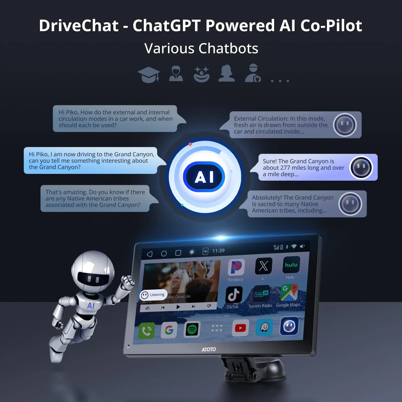 ATOTO 9" Portable Car Stereo with Bluetooth, Wi-Fi, Wireless CarPlay & Android Auto, MirrorLink, GPS Tracking, Multimedia Audio Player