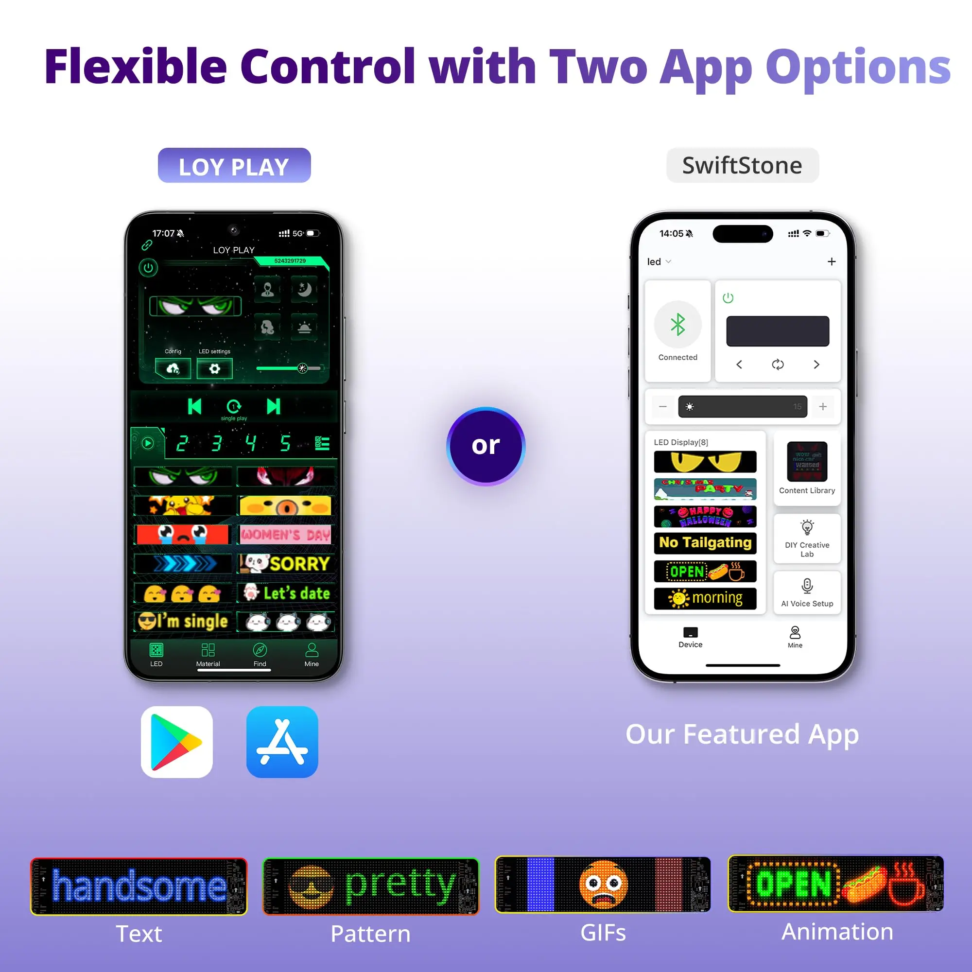 ATOTO CI-VIALD19 Programmable LED Car Sign - 19.4" Voice & App Controlled Scrolling Text Display with Custom RGB Animations for Vehicles, Stores & Hotels (USB 5V Powered, Flexible Mount)—